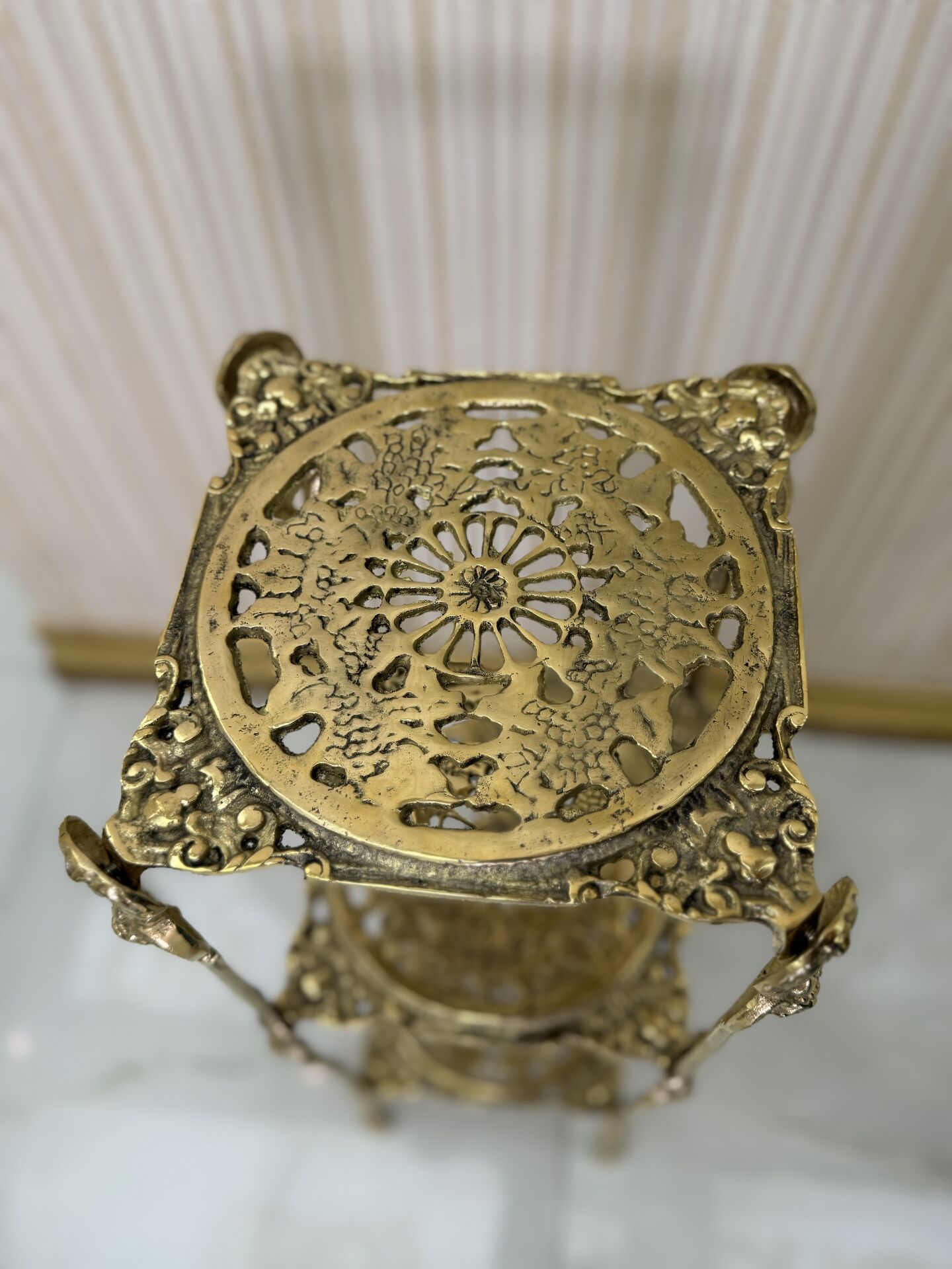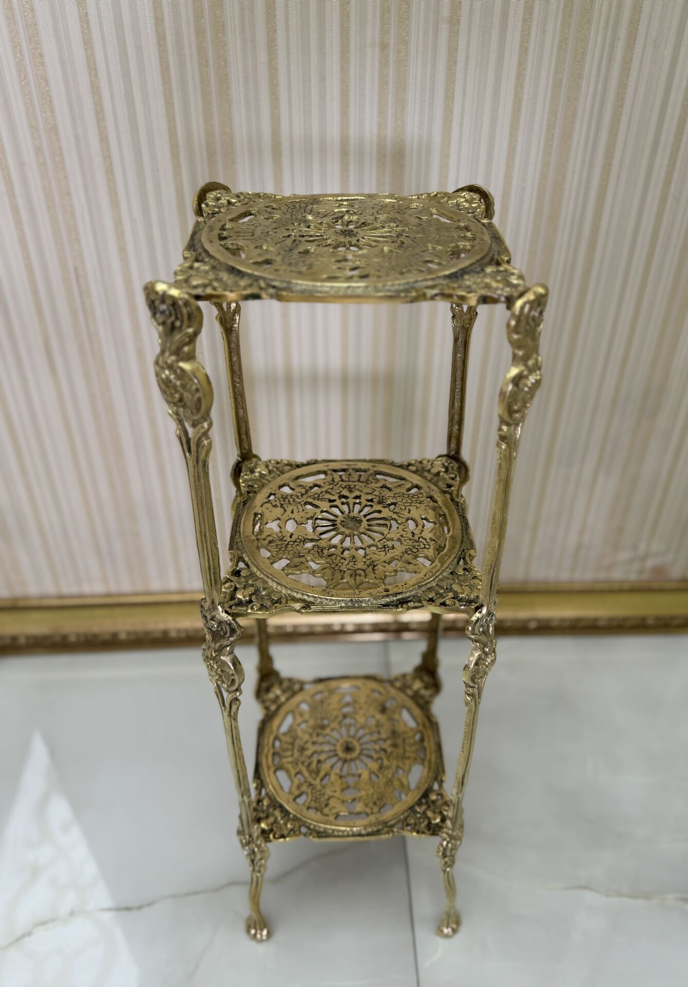 3 Katlı kare pirinç yan sehpa