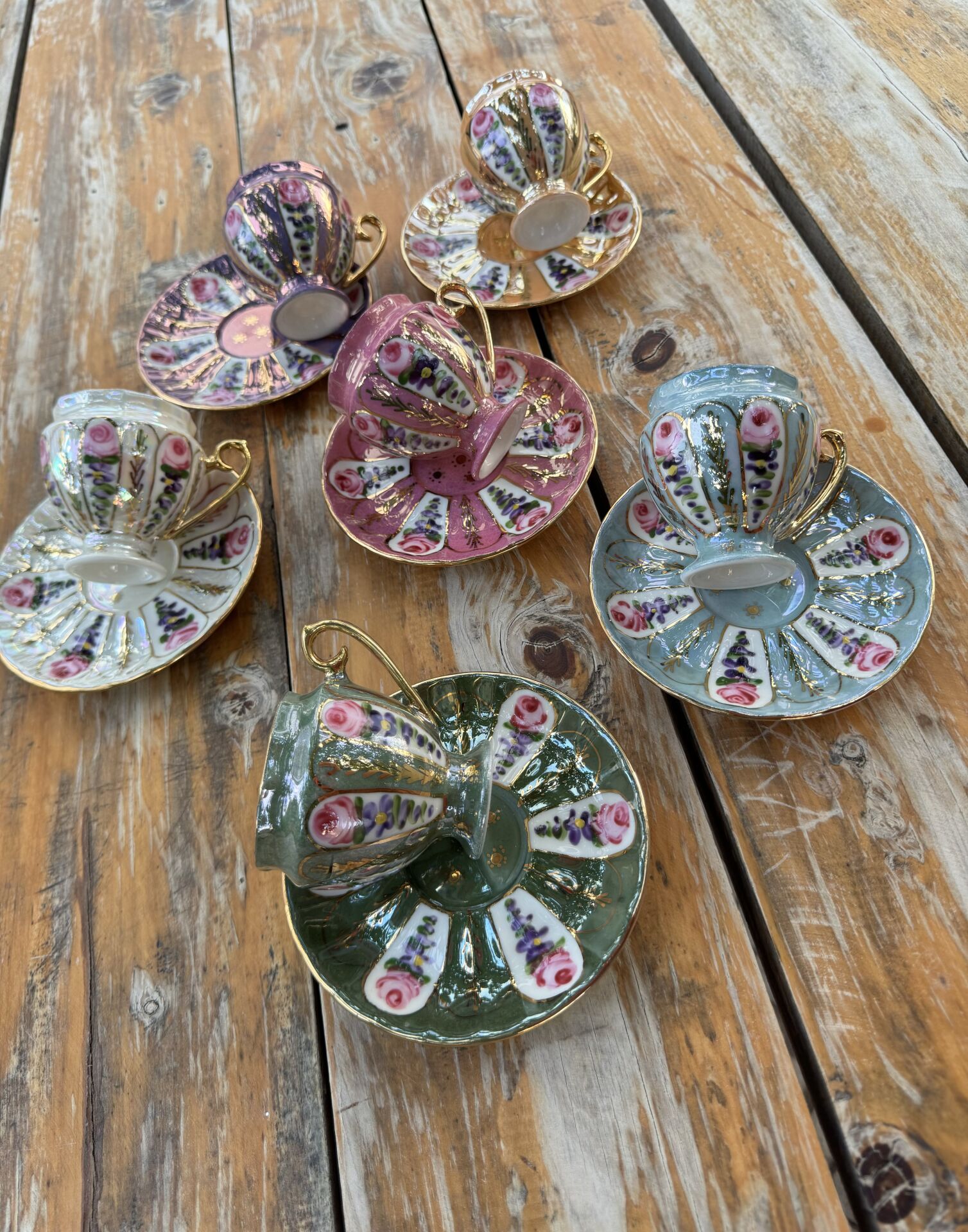 6 Kişilik el boyama porselen kahve fincan takımı