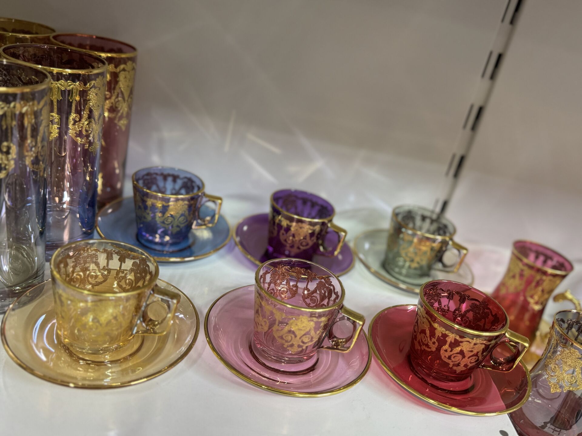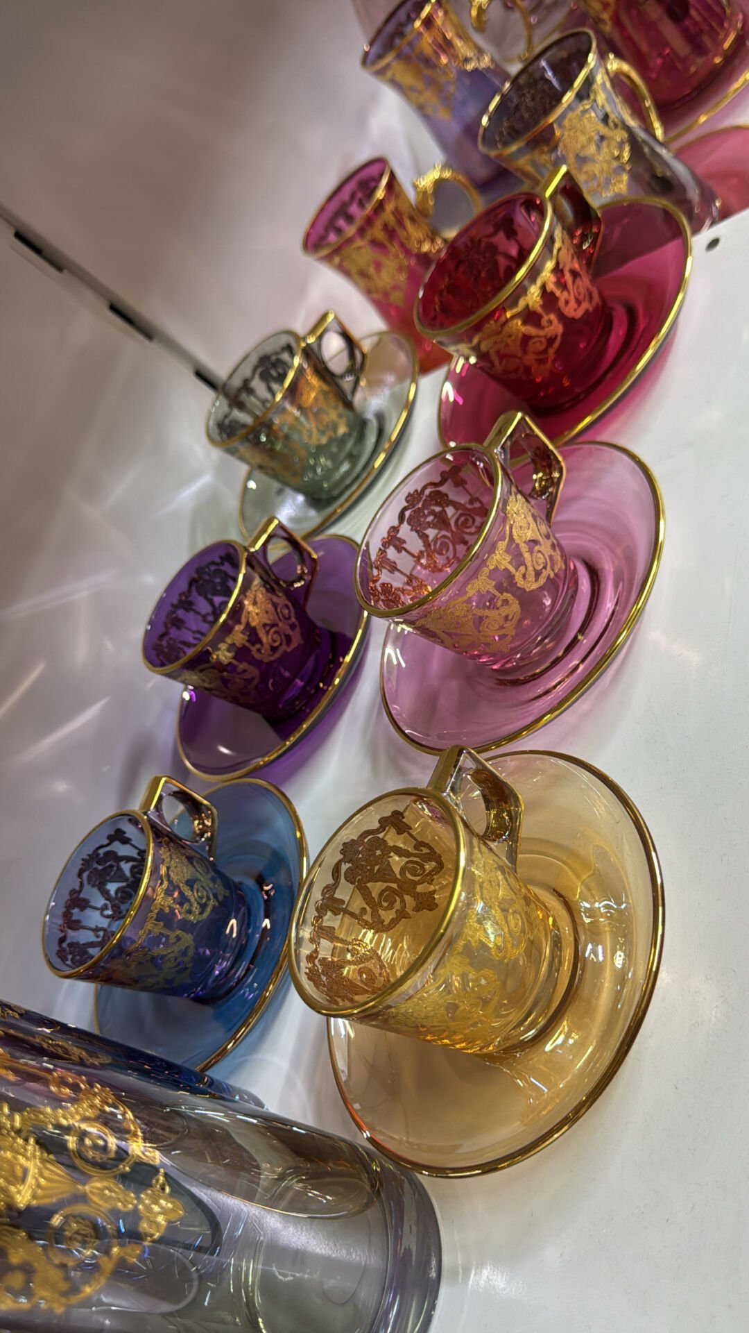 6 Kişilik gold yaldız el boyama cam kahve fincan takımı